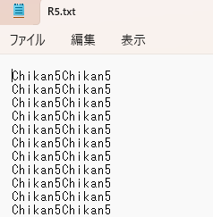 [R5.txt]を開けるとこのようになっています。置換対象の文字列が同じ行に2つあっても両方とも置換できている事が分かります。